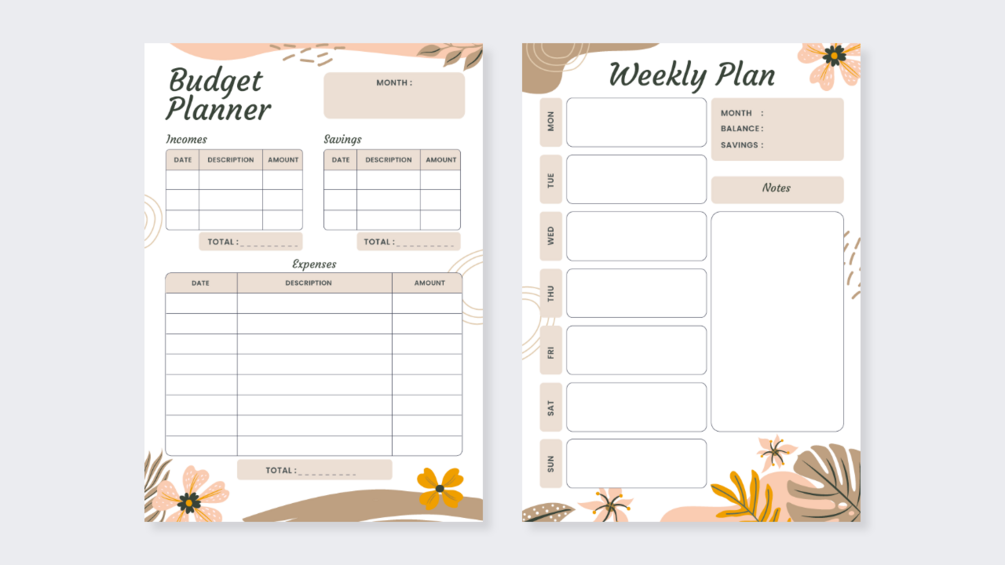 You will get beautiful printable budget & weekly planner that helps you to monitor your goals, maintain organization, and maximize your time effectively.